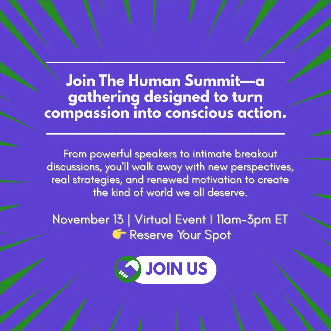 The Human Summit isn’t just an event—it’s a movement. Walk away with renewed purpose, powerful connections, and the tools to create a kinder, more compassionate world.